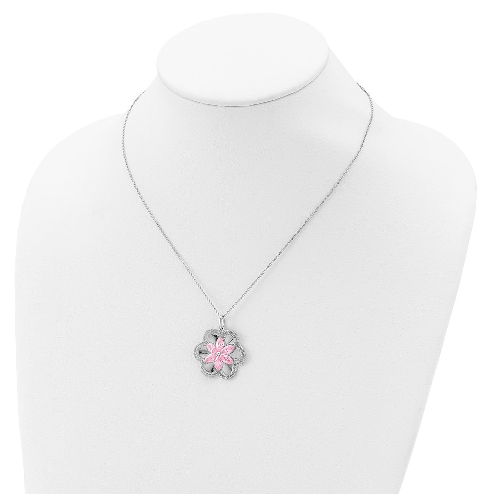 Sentimental Expressions Sterling Silver Rhodium-plated CZ Pretty in Pink Flower 18 Inch Necklace