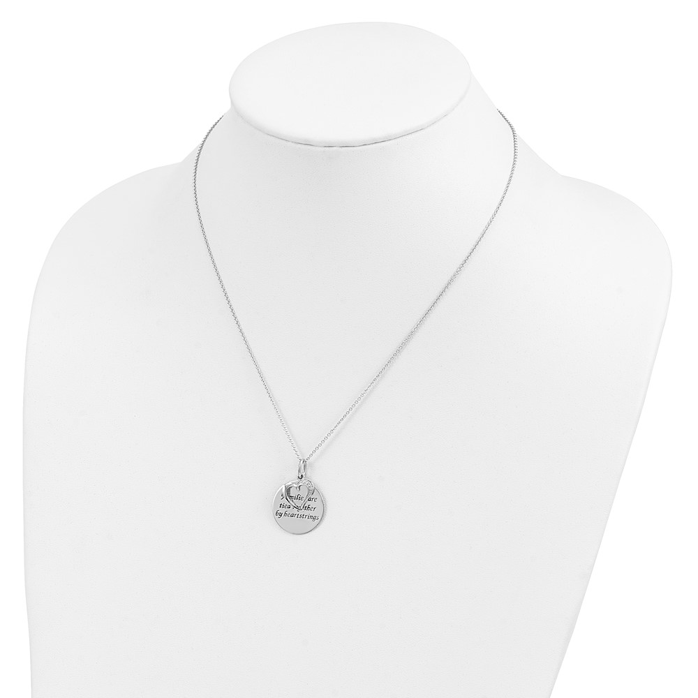 Sentimental Expressions Sterling Silver Rhodium-plated Antiqued CZ Families Are Tied Together 18in Heart Necklace