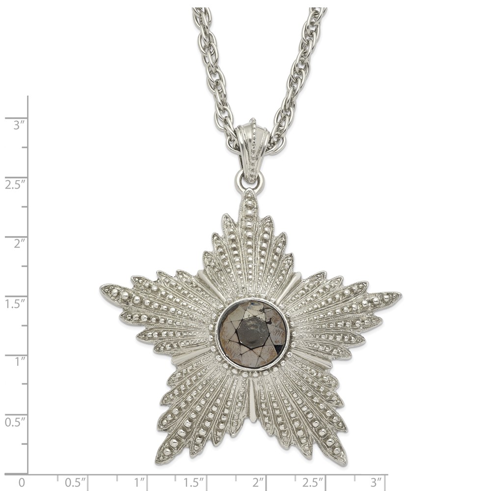 1928 Jewelry Large Silver-tone Textured Hematite Epoxy Faceted Stone Center Star 32 inch Necklace