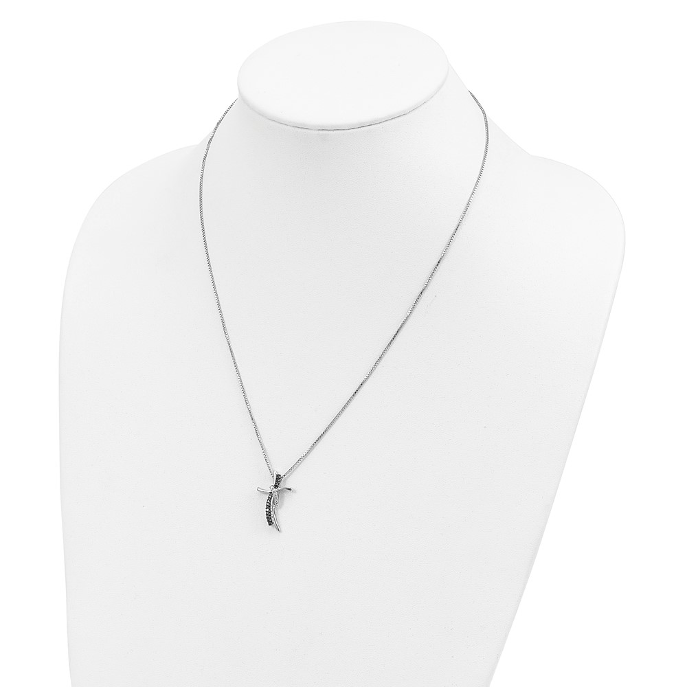 White Night Sterling Silver Rhodium-plated Black and White Diamond Cross 18 Inch Necklace with 2 Inch Extender