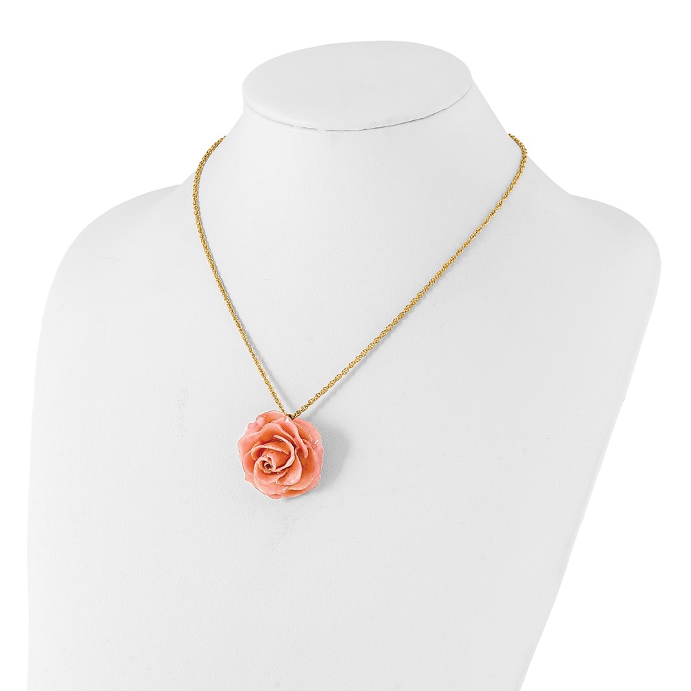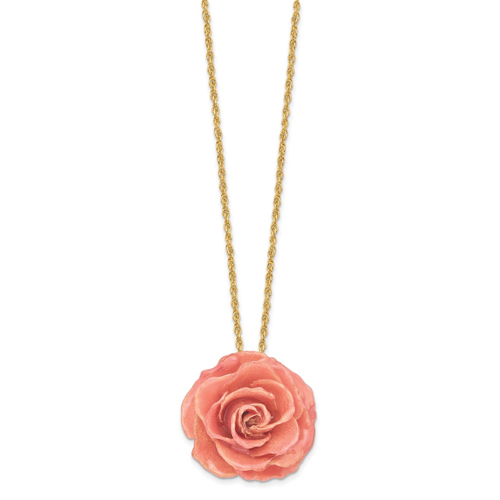 Lacquer Dipped Pink Real Rose with 20 inch Gold-tone Necklace