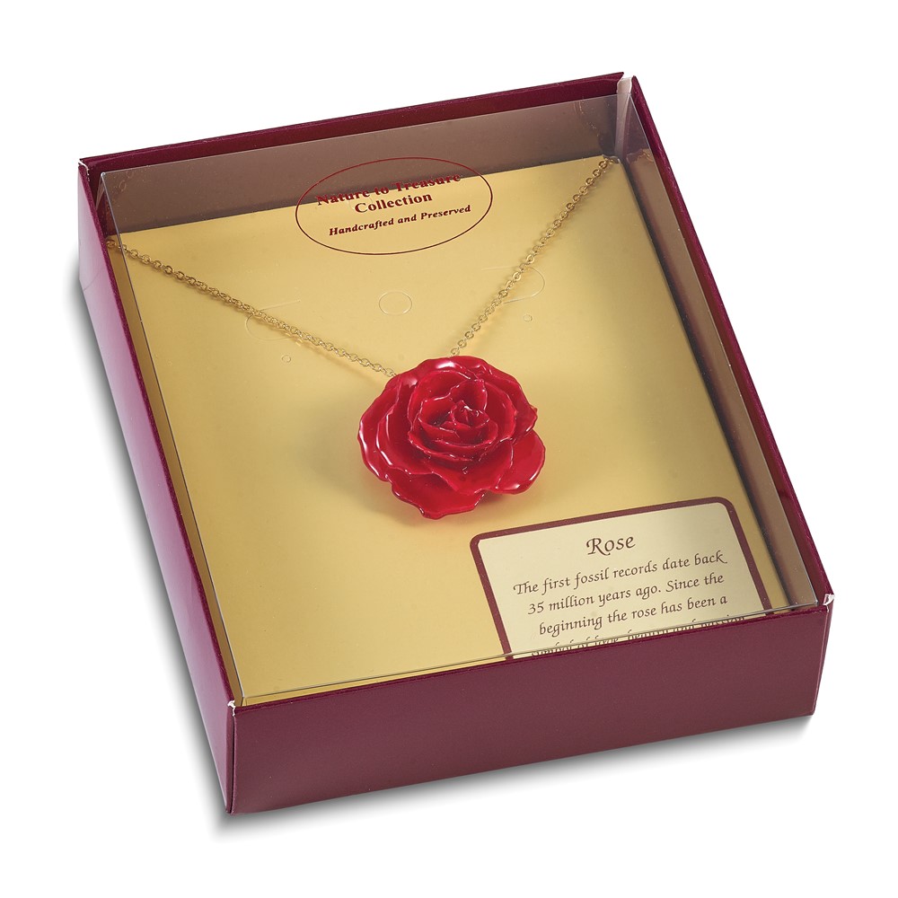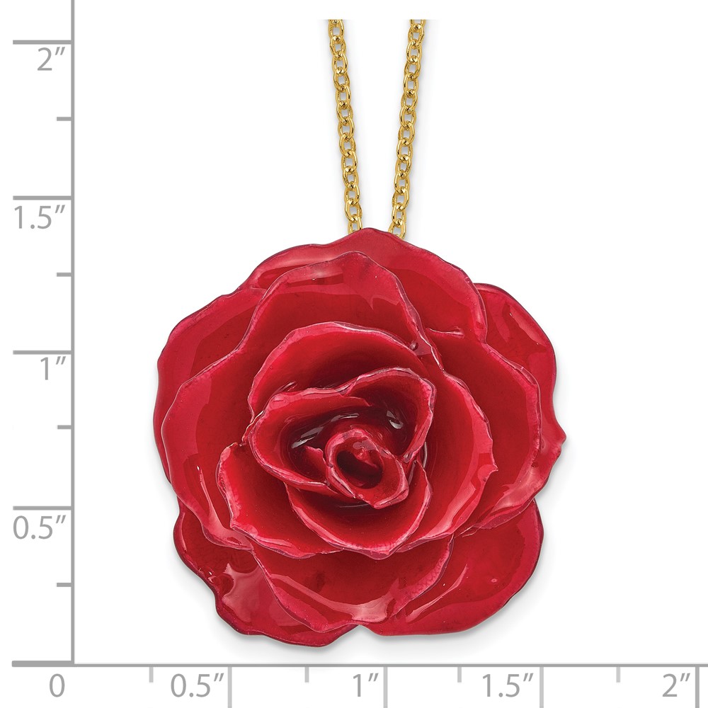 Lacquer Dipped Red Real Rose 20 inch Gold-tone Necklace