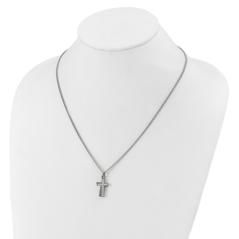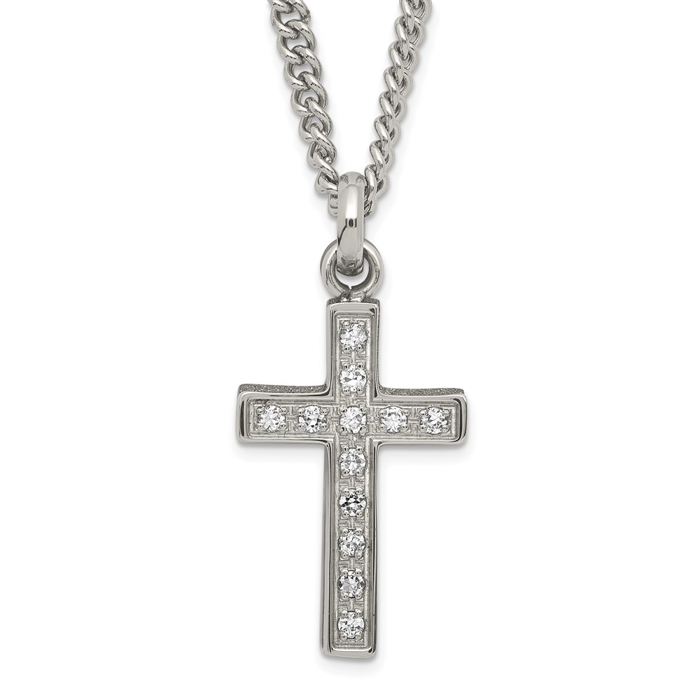 Stainless Steel Laser-cut & CZ Crosses Pendant Necklace