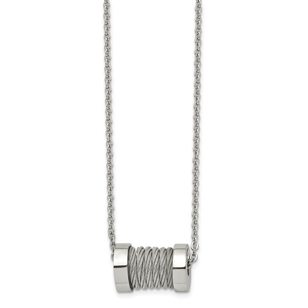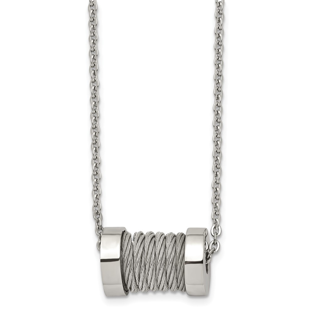 Stainless Steel Brushed and Polished Wire Barrel 24in Necklace