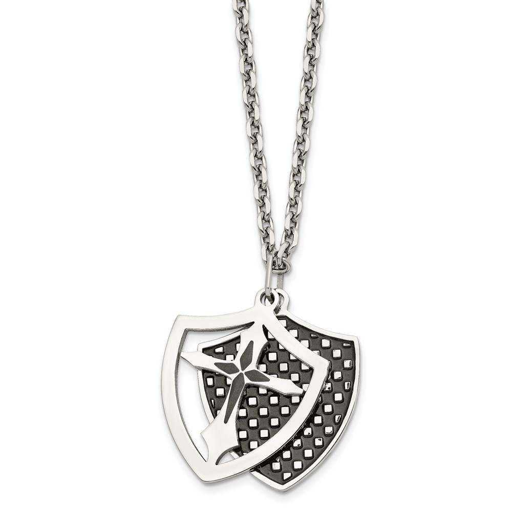 Stainless Steel Polished Black IP-plated Moveable Shield 22in Necklace