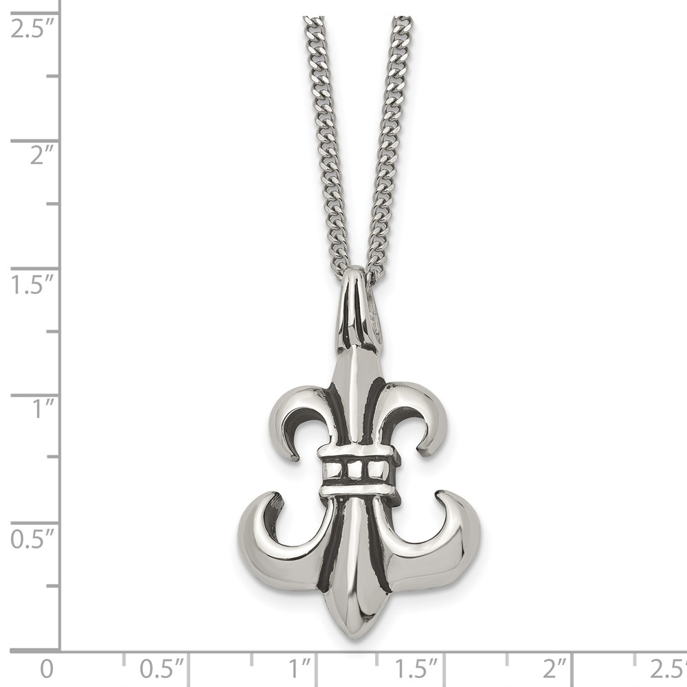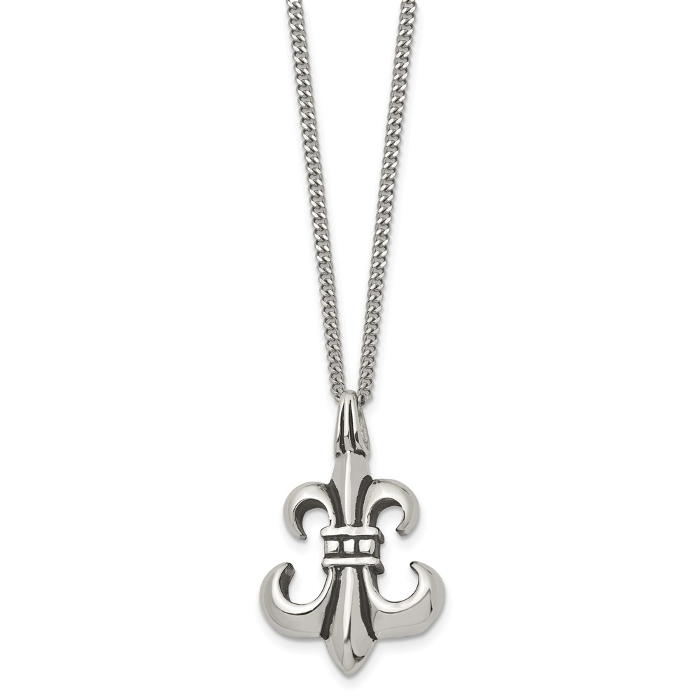 Stainless Steel Antiqued and Polished Fleur de lis 18in Necklace