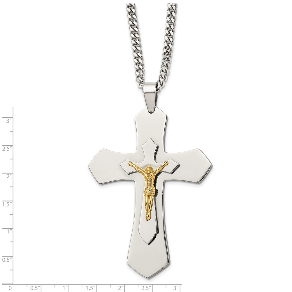 Chisel Stainless Steel Polished Yellow IP-plated Large Crucifix Pendant on a 24 inch Curb Chain Necklace