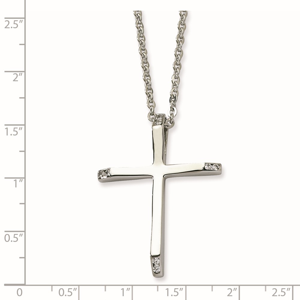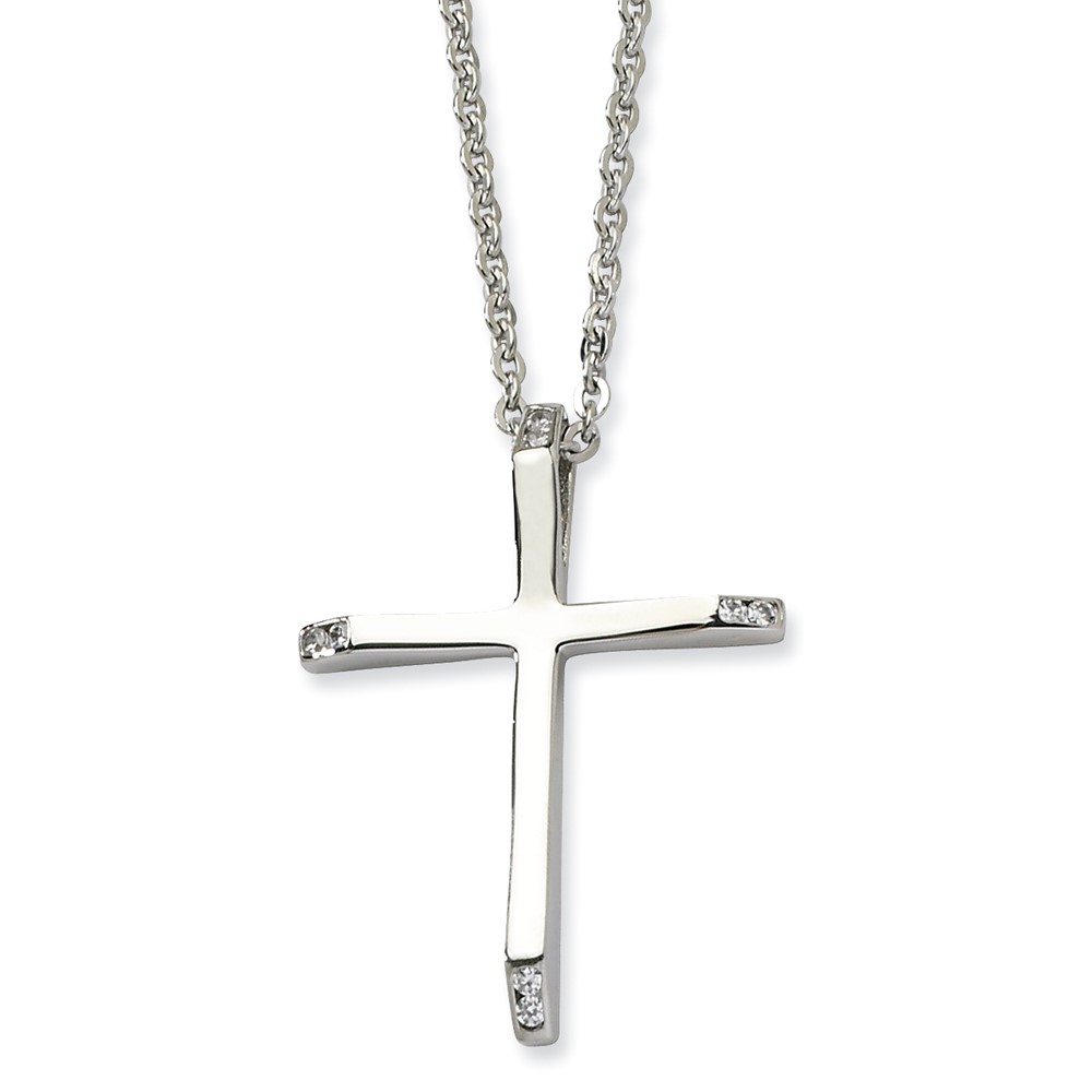 Stainless Steel CZ Cross Pendant 22in Necklace