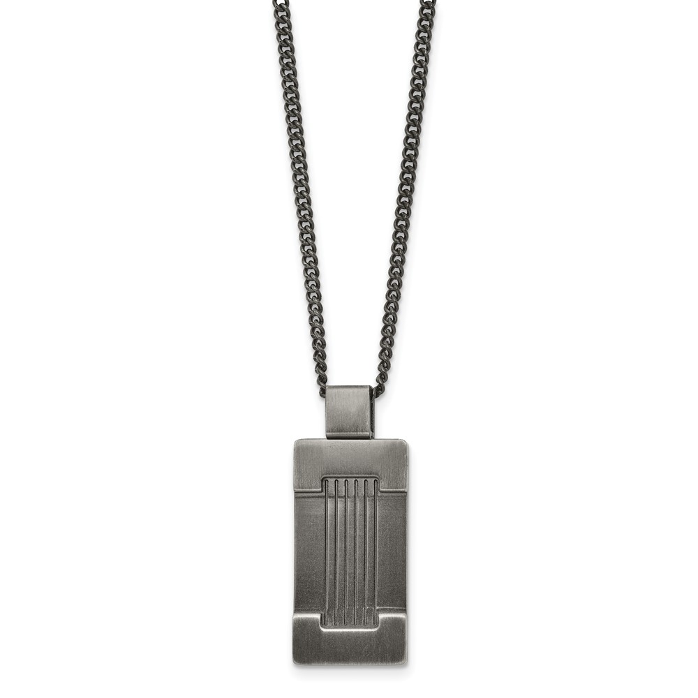 Stainless Steel Antiqued and Brushed Dog Tag 22in Necklace
