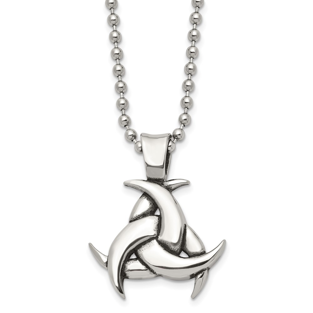 Chisel Stainless Steel Antiqued and Polished Celtic Knot Pendant on a 22 inch Ball Chain Necklace