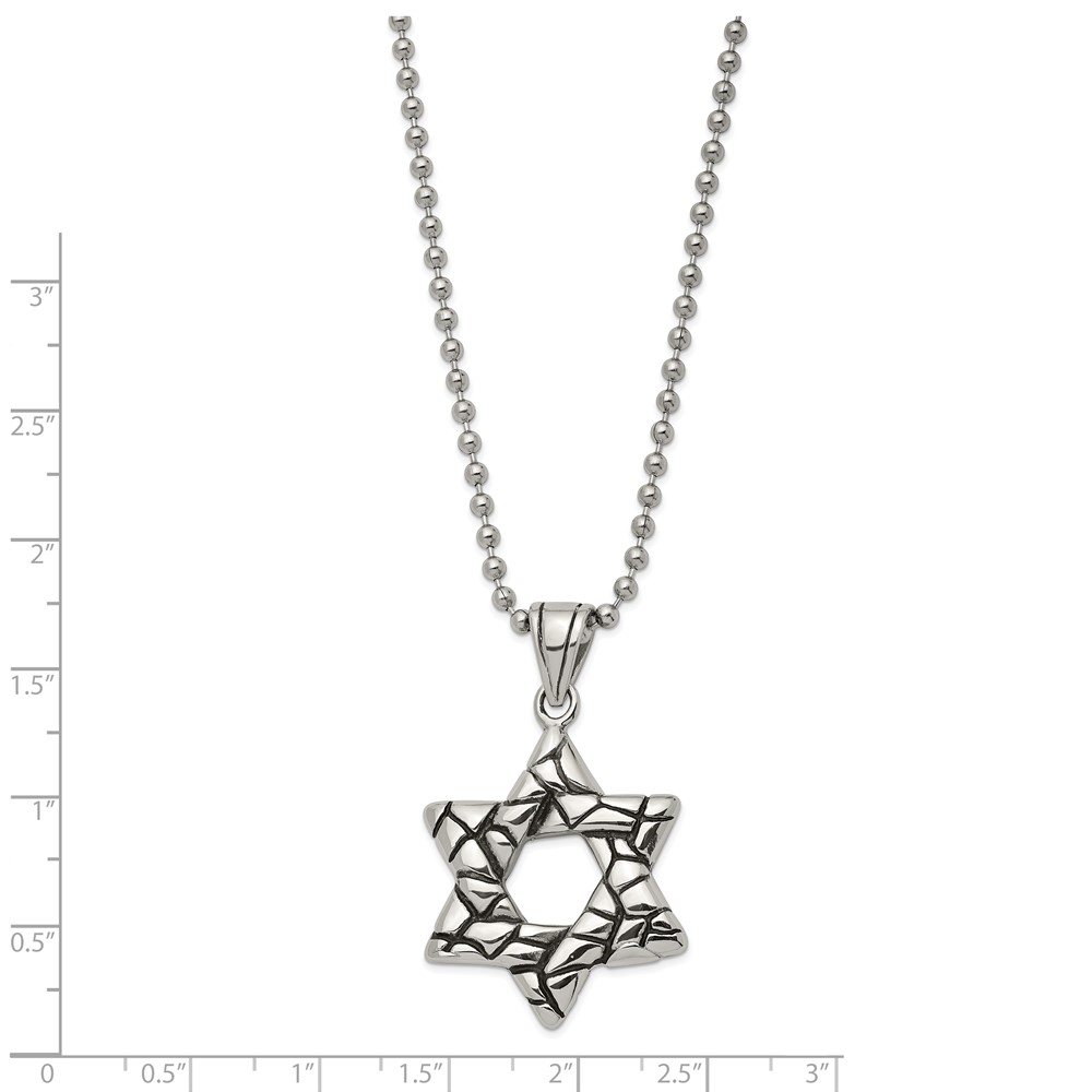 Chisel Stainless Steel Antiqued and Polished Star of David Pendant on a 24 inch Ball Chain Necklace