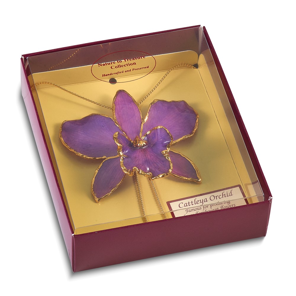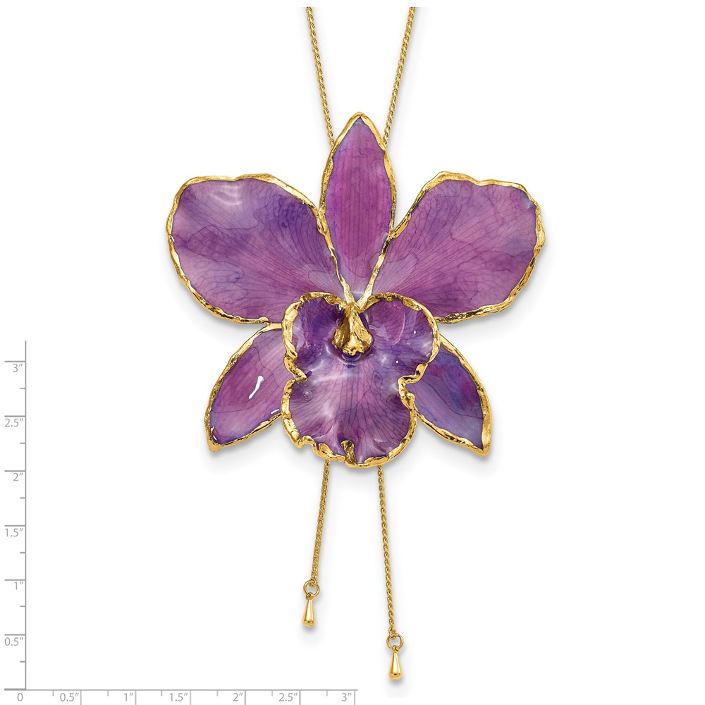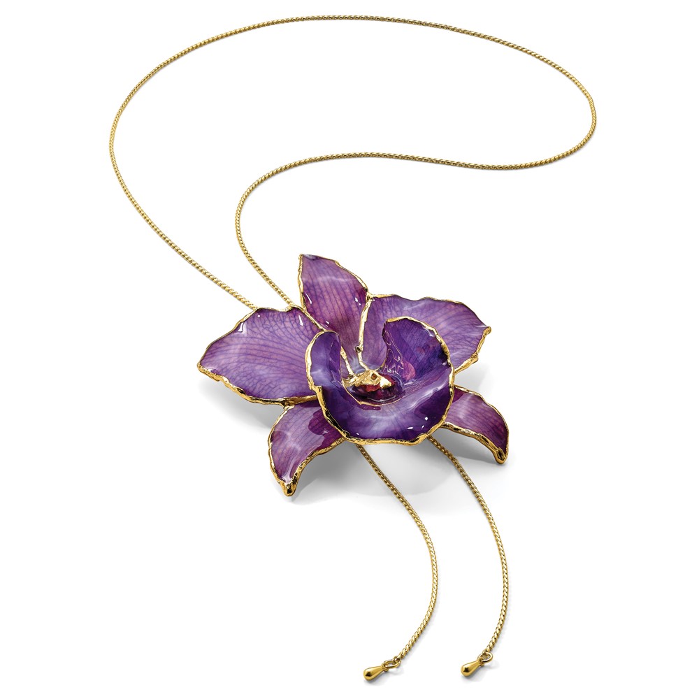 24K Gold-trim Lacquer Dipped Purple Real Cattleya Orchid Slip-on Adjustable Gold-tone Necklace