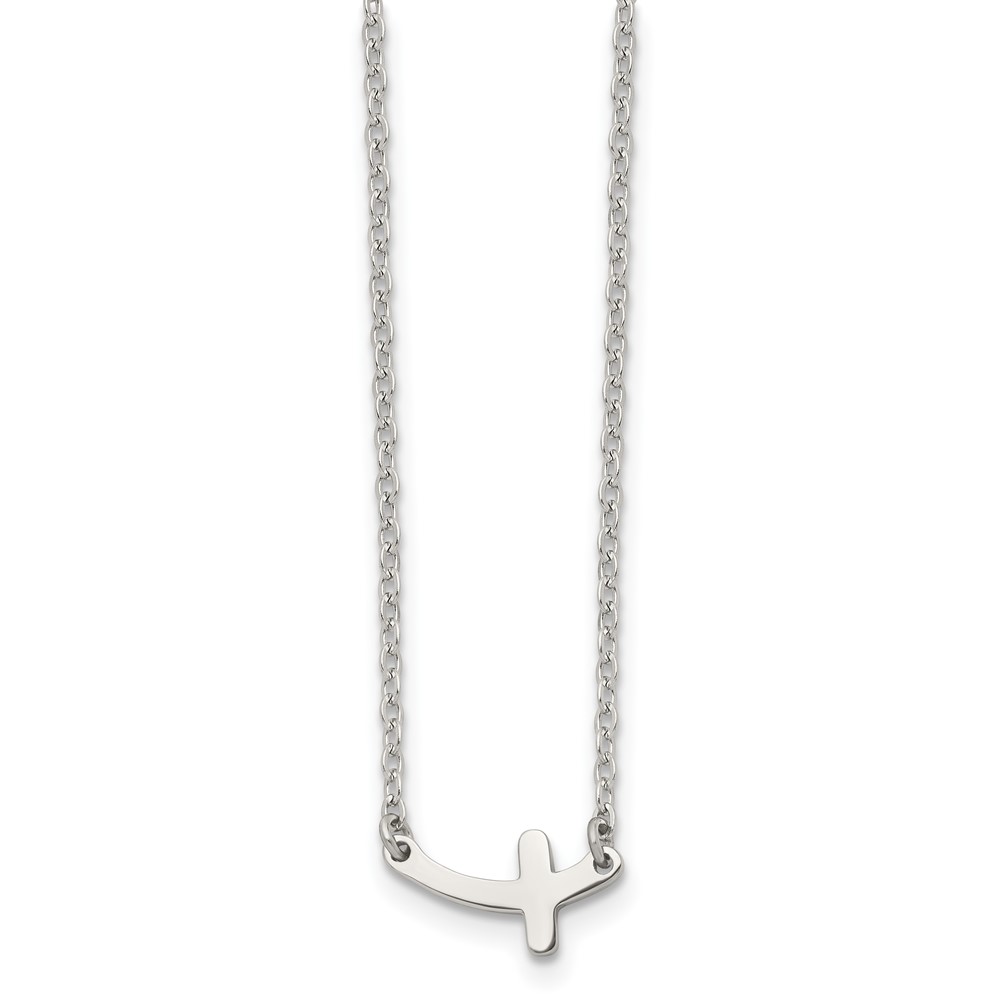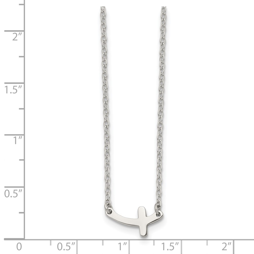 Chisel Stainless Steel Polished Sideways Cross on an 18 inch Cable Chain Necklace