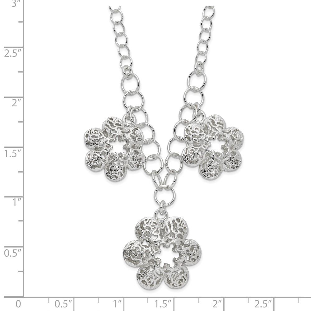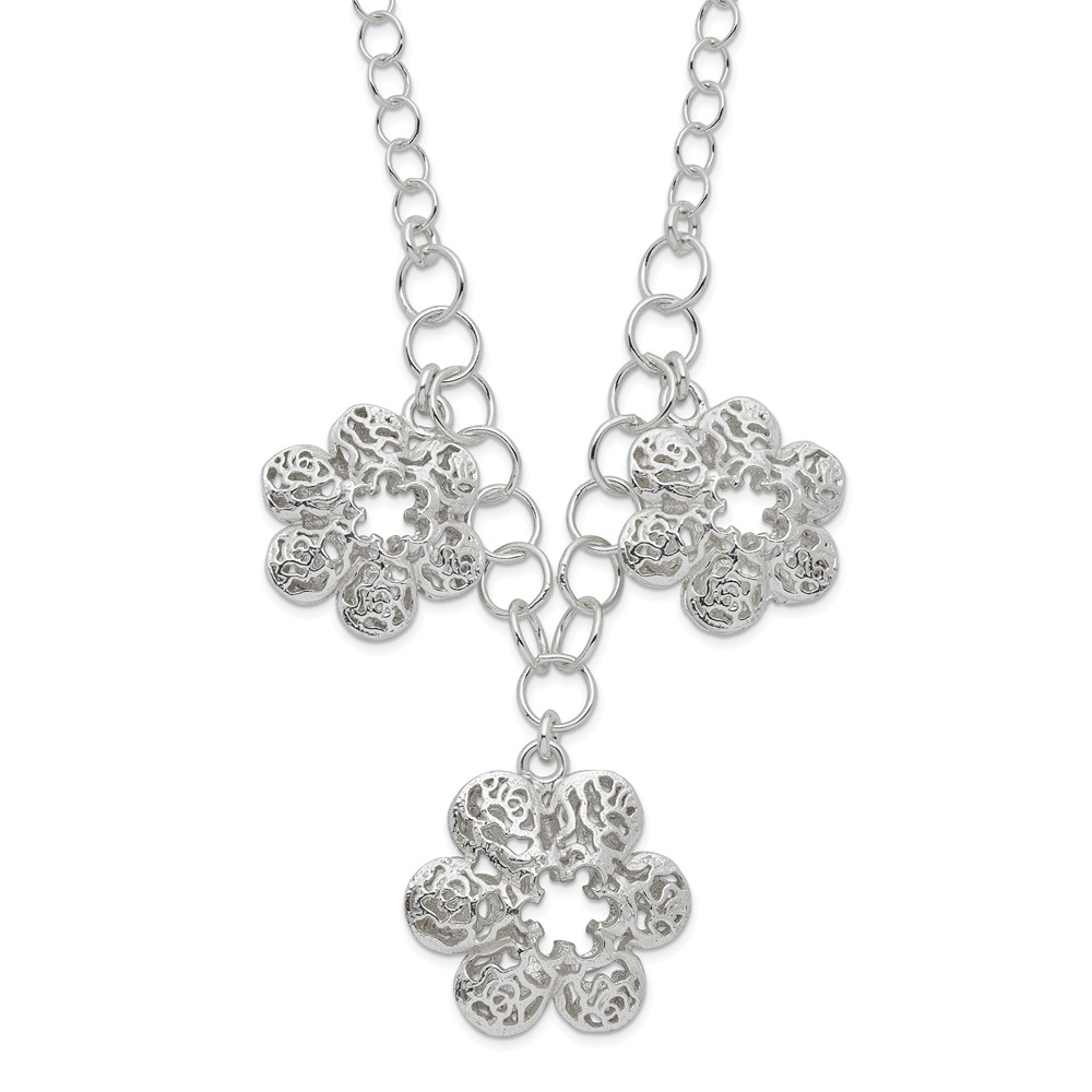 Sterling Silver Polished Filigree Flower w/ 2in ext Necklace