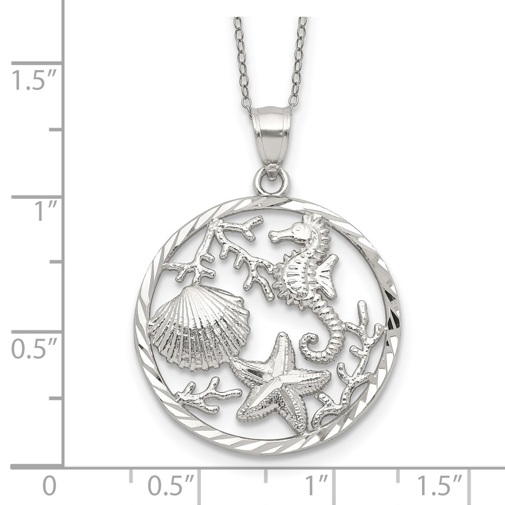 Sterling Silver Rhodium-plated Seahorse, Starfish and Shell Pendant