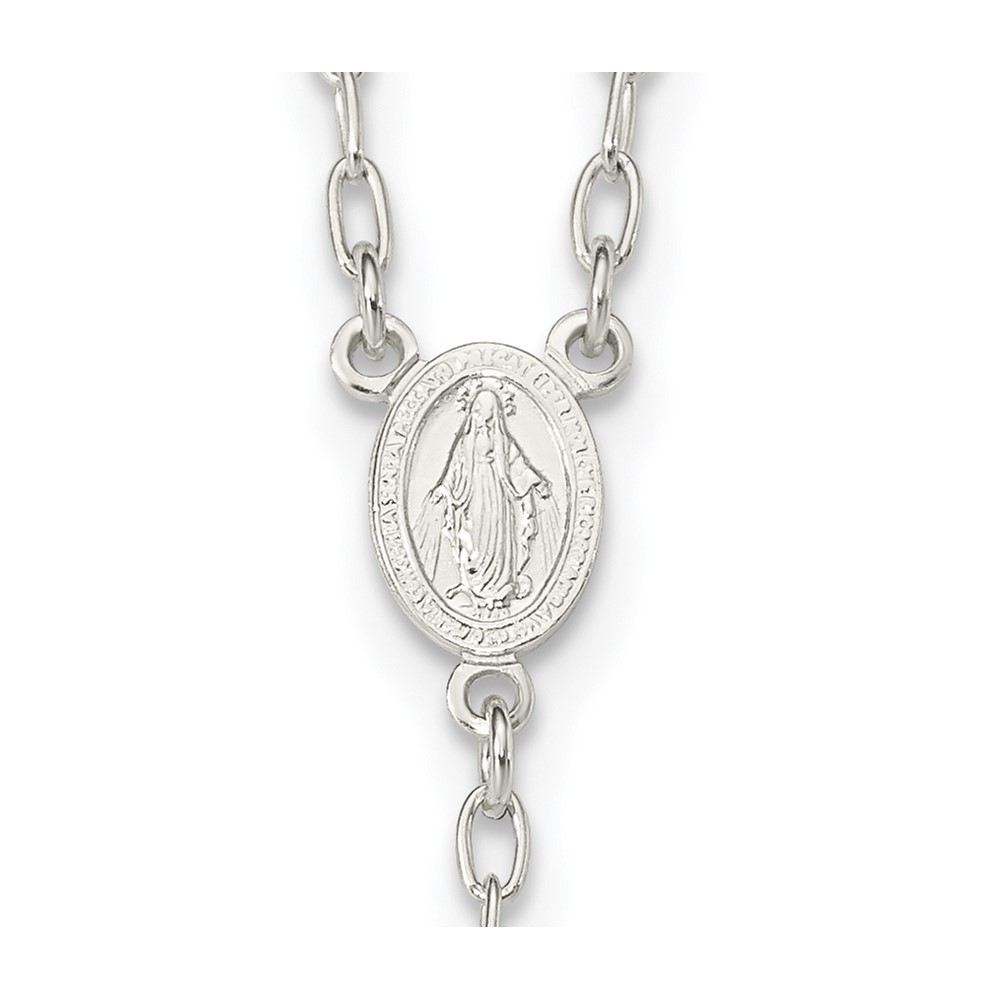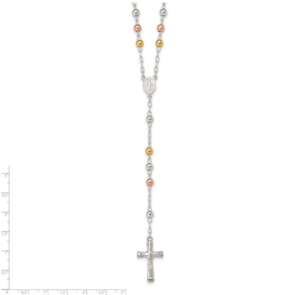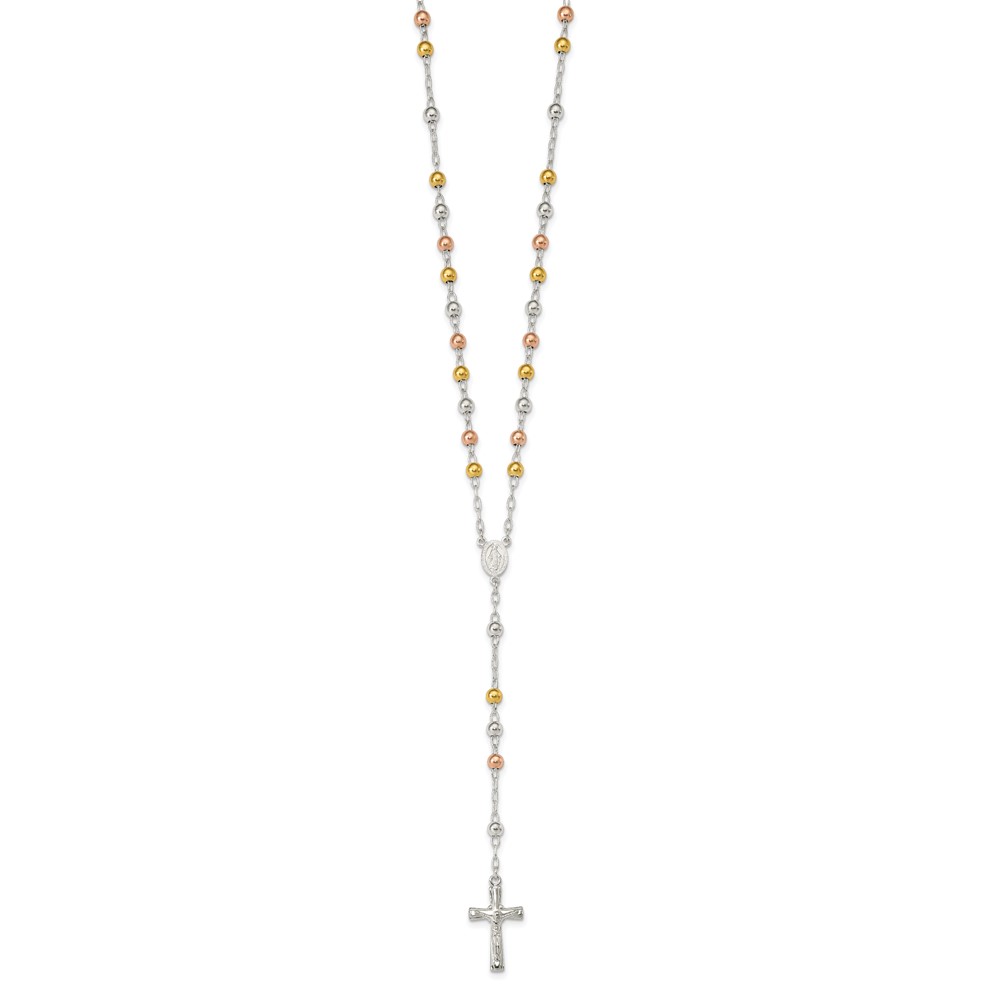 Sterling Silver Polished Rosary Tri-color Beads Necklace