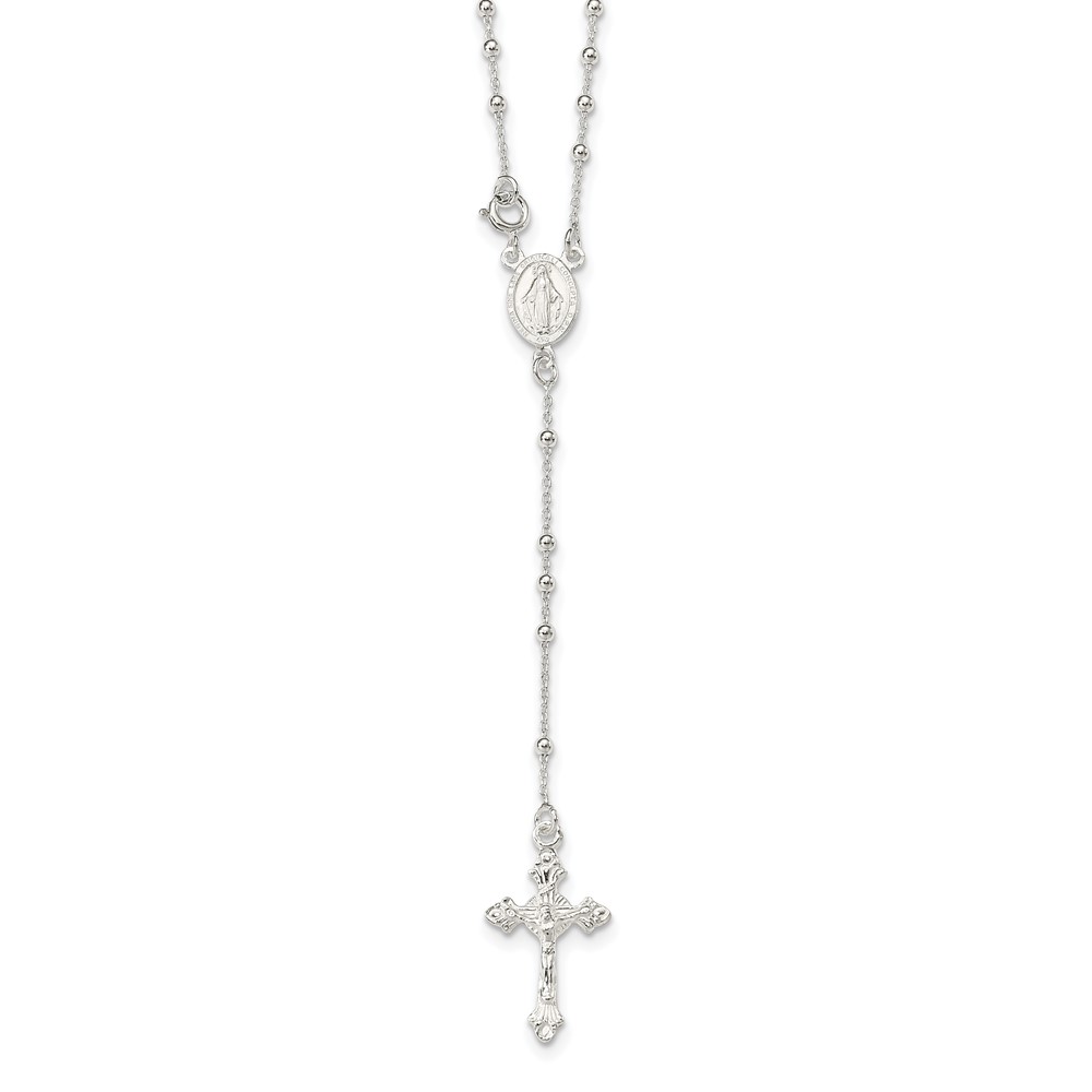 Sterling Silver Polished Rosary 18 inch Necklace