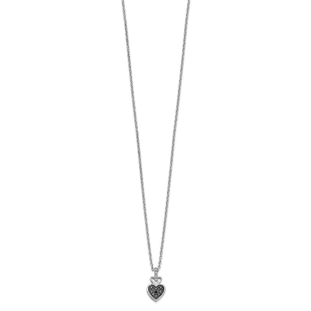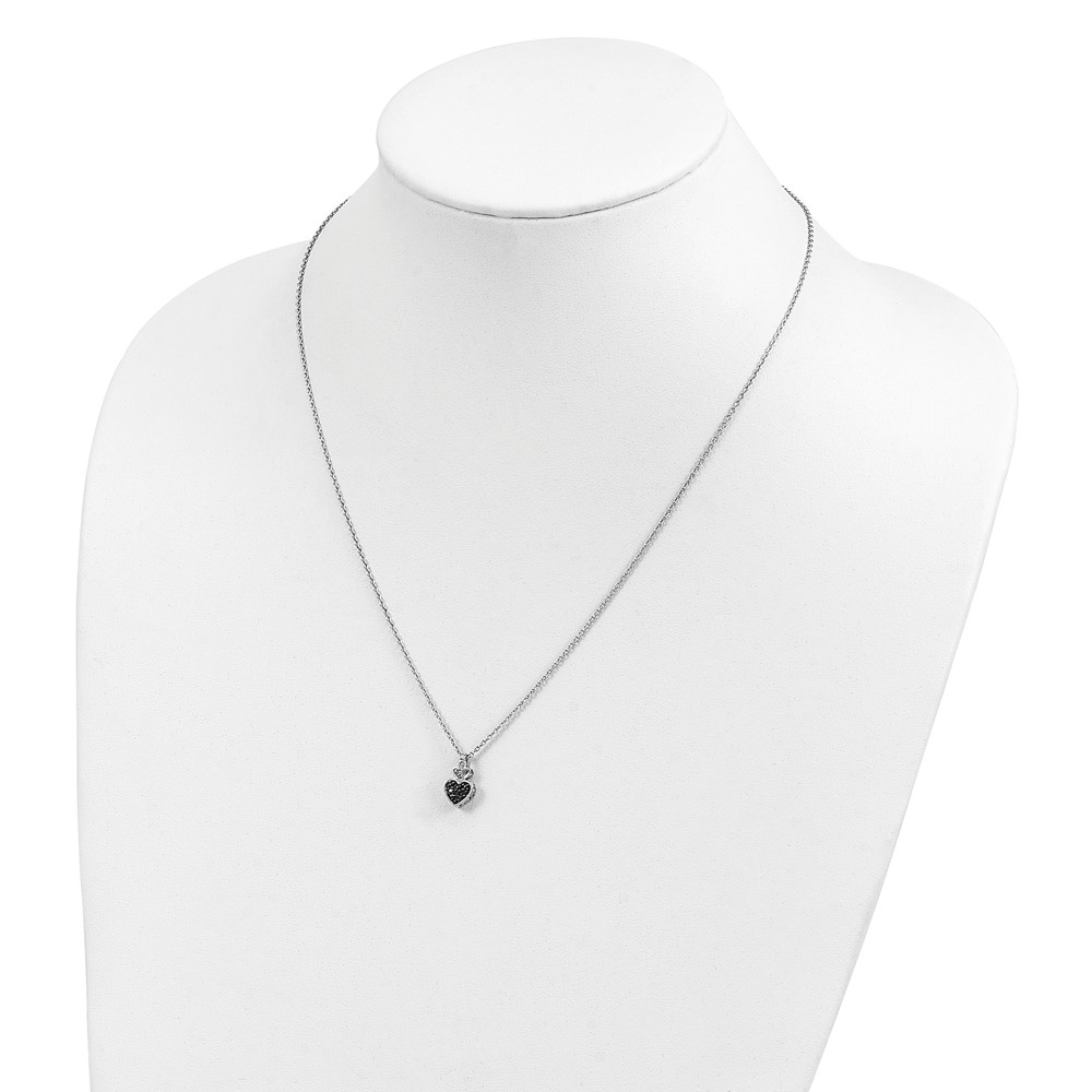 White Night Sterling Silver Rhodium-plated White and Black Diamond Heart 18 Inch Necklace with 2 Inch Extender