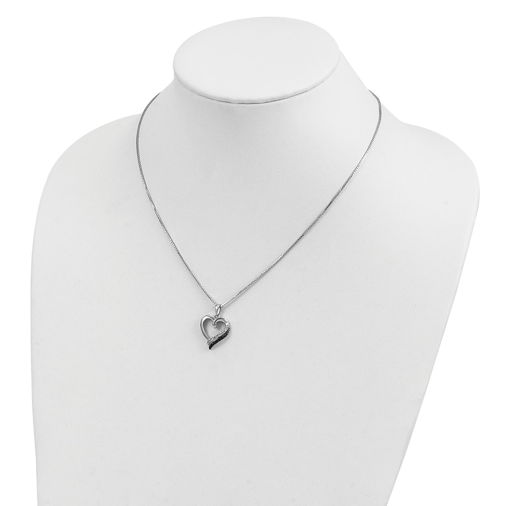 White Night Sterling Silver Rhodium-plated Black and White Diamond Heart Necklace with 2 Inch Extender