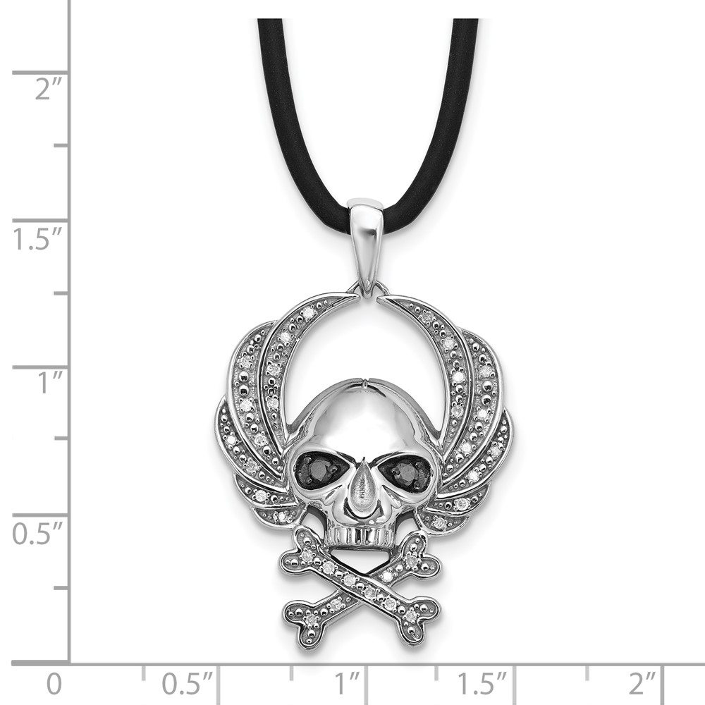 White Night Sterling Silver Rhodium-plated Black and White Diamond Skull 18 Inch Rubber Cord Necklace