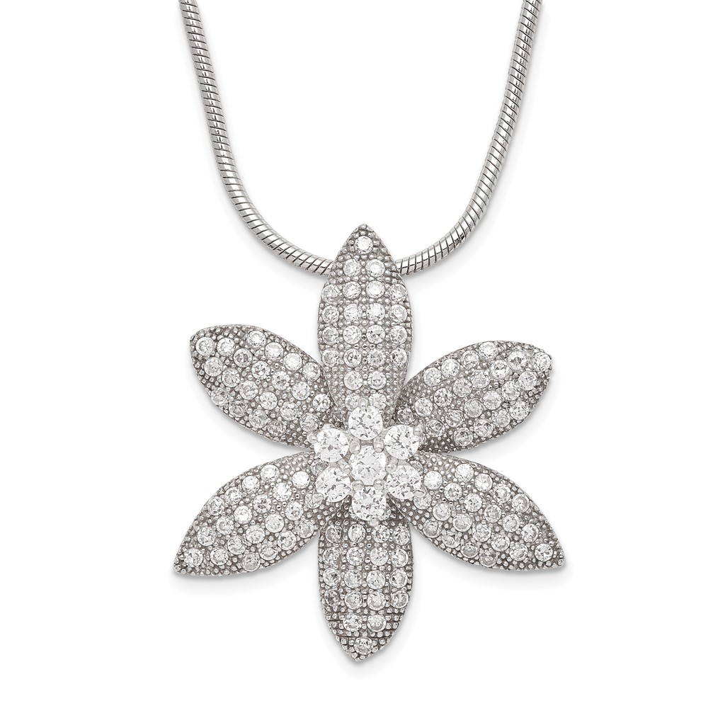 Sterling Silver & CZ Brilliant Embers Flower w/ 2in ext Necklace