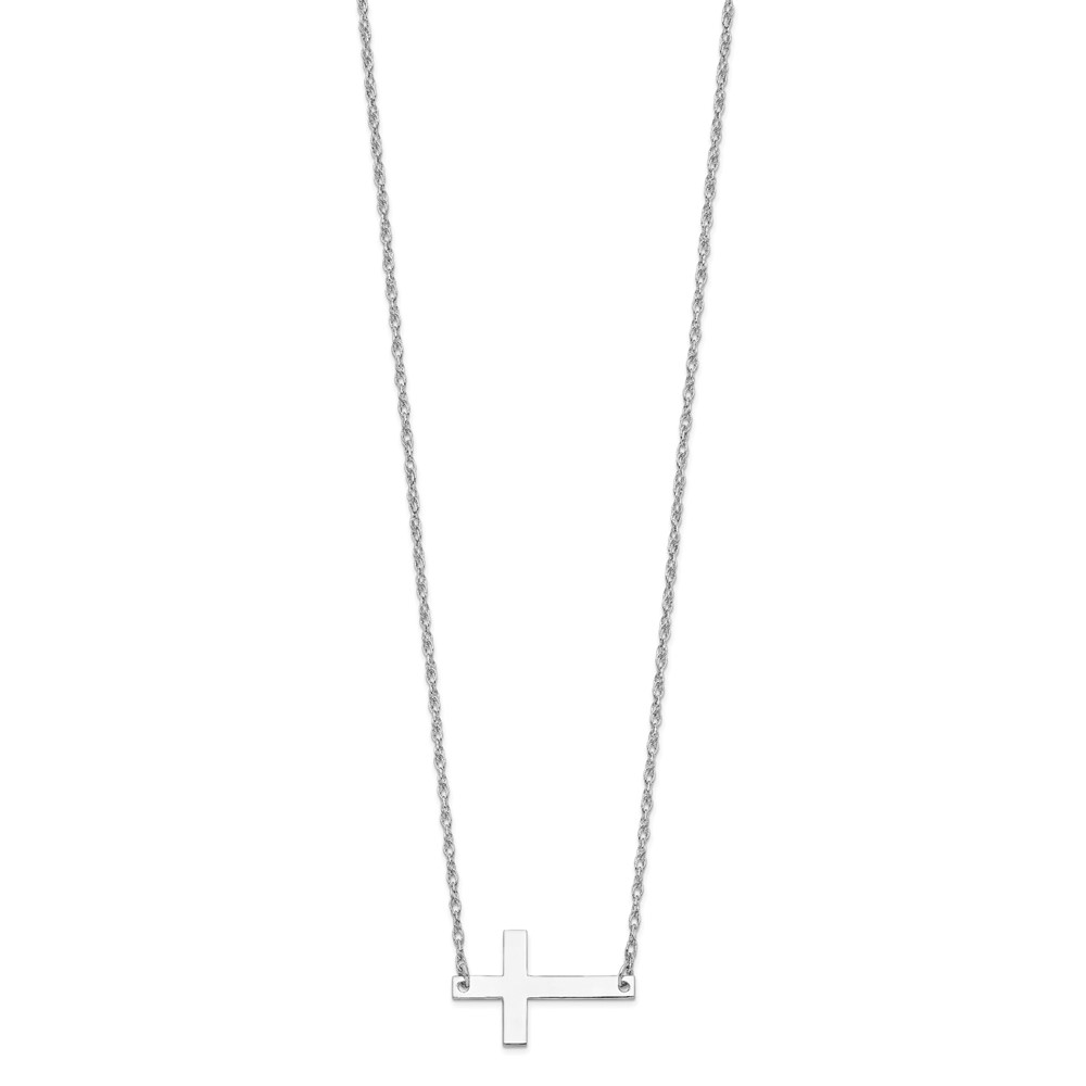 Sterling Silver Rhodium-plated Large Sideways Cross Necklace