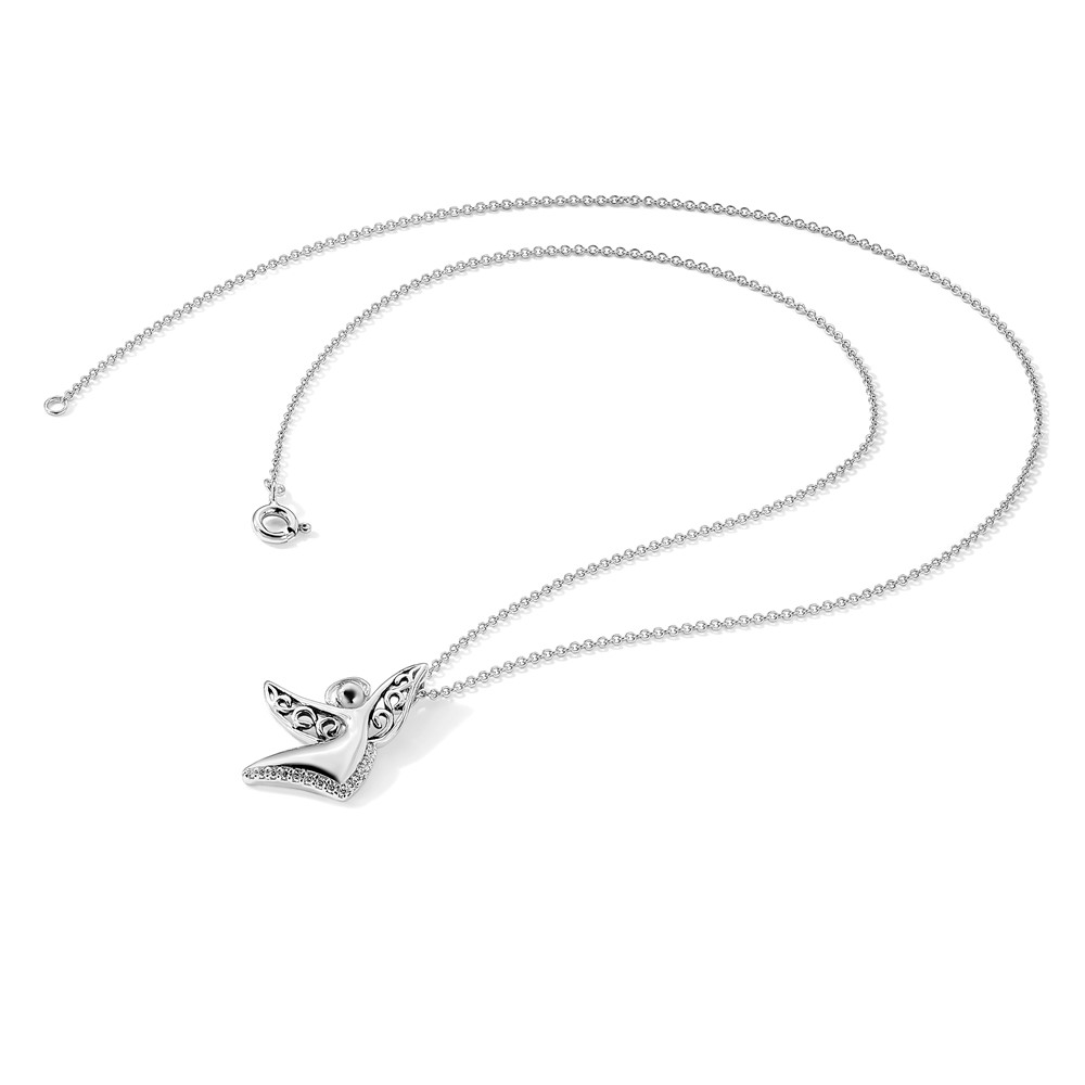 Sentimental Expressions Sterling Silver Rhodium-plated CZ Antiqued Angel Of Joy 18in. Necklace