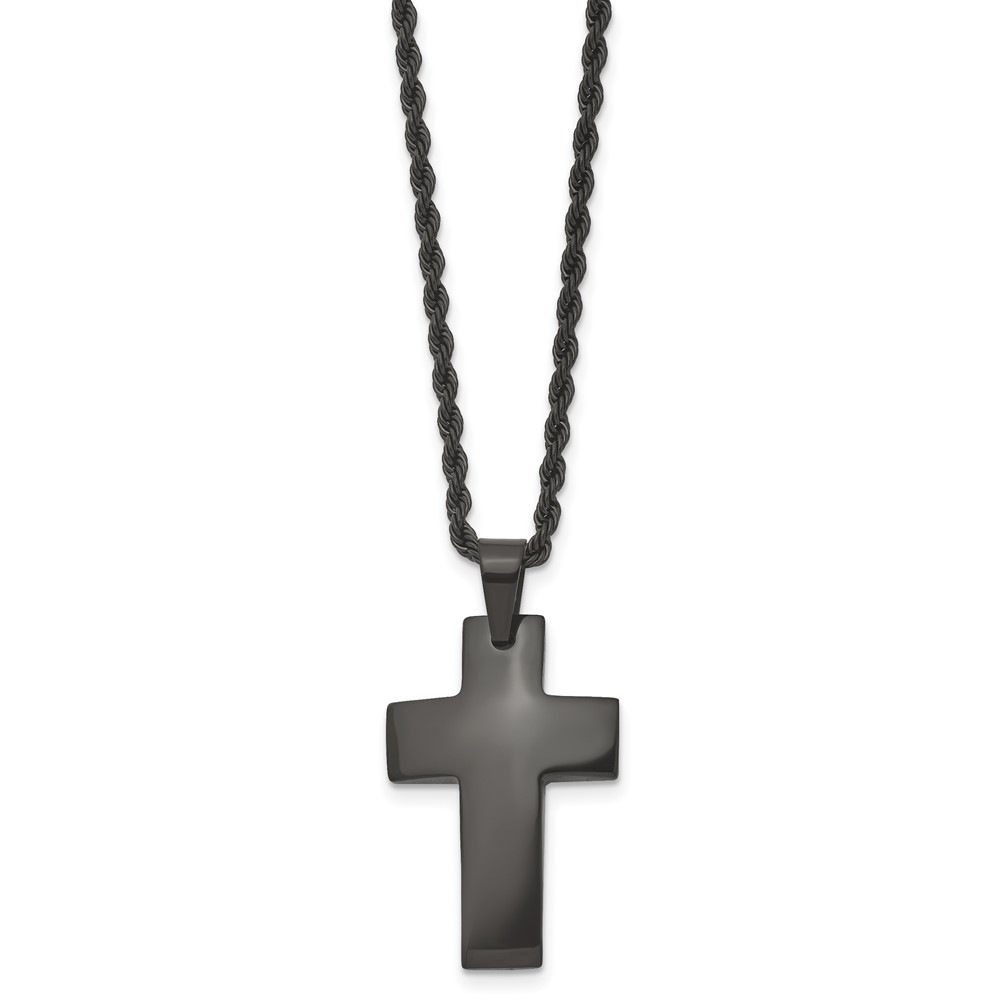 Chisel Stainless Steel Brushed Black IP-plated Cross Pendant on a 20 inch Rope Chain Necklace