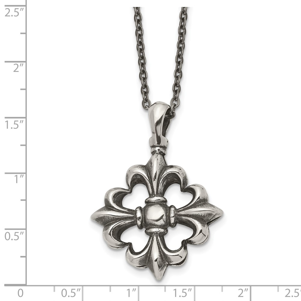 Stainless Steel Antiqued and Polished Fleur de lis 18in Necklace