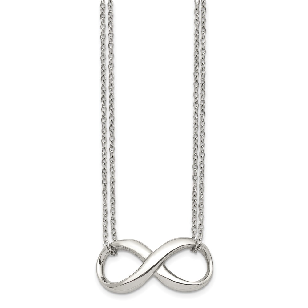 Chisel Stainless Steel Polished Infinity Symbol on an 18 inch 2-Strand Cable Chain Necklace
