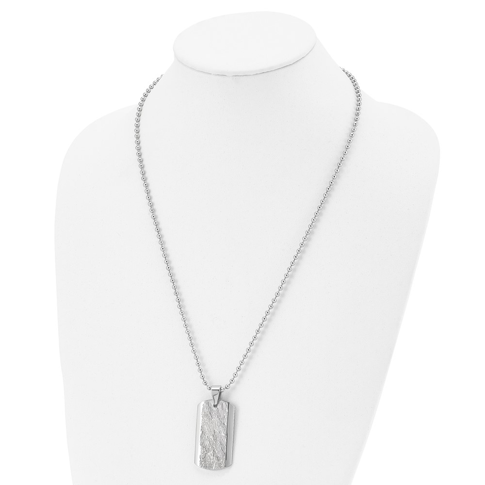 Stainless Steel Polished and Textured Dog Tag 24in Necklace