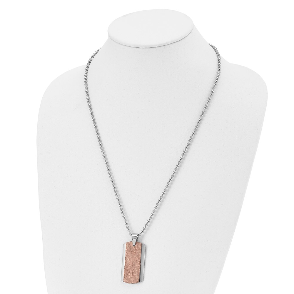 Stainless Steel Polished and Textured Brown IP-plated 24in Necklace