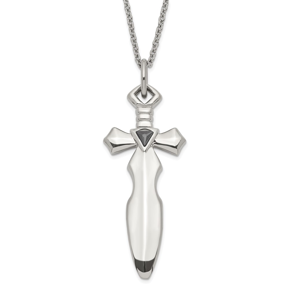 Stainless Steel Black CZ Sword Necklace
