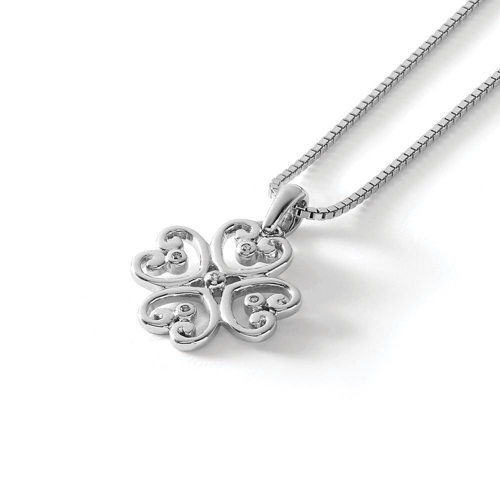 White Ice Sterling Silver Rhodium-plated 18 Inch Diamond 4 Heart Necklace with 2 Inch Extender
