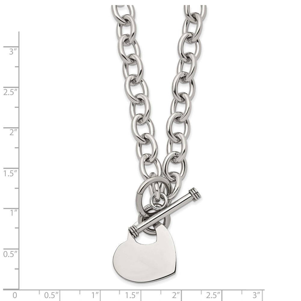 Chisel Stainless Steel Polished Heart Toggle on an 18 inch Open Link Chain Necklace