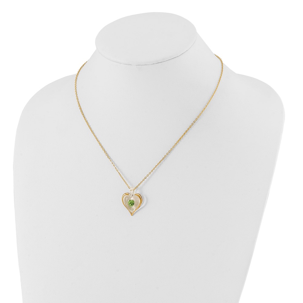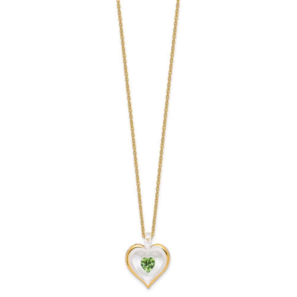 Glass Baron 22K Accent Gilding Gold-trim Glass with Green August Birthstone Crystal Heart 18 inch Gold-tone Necklace