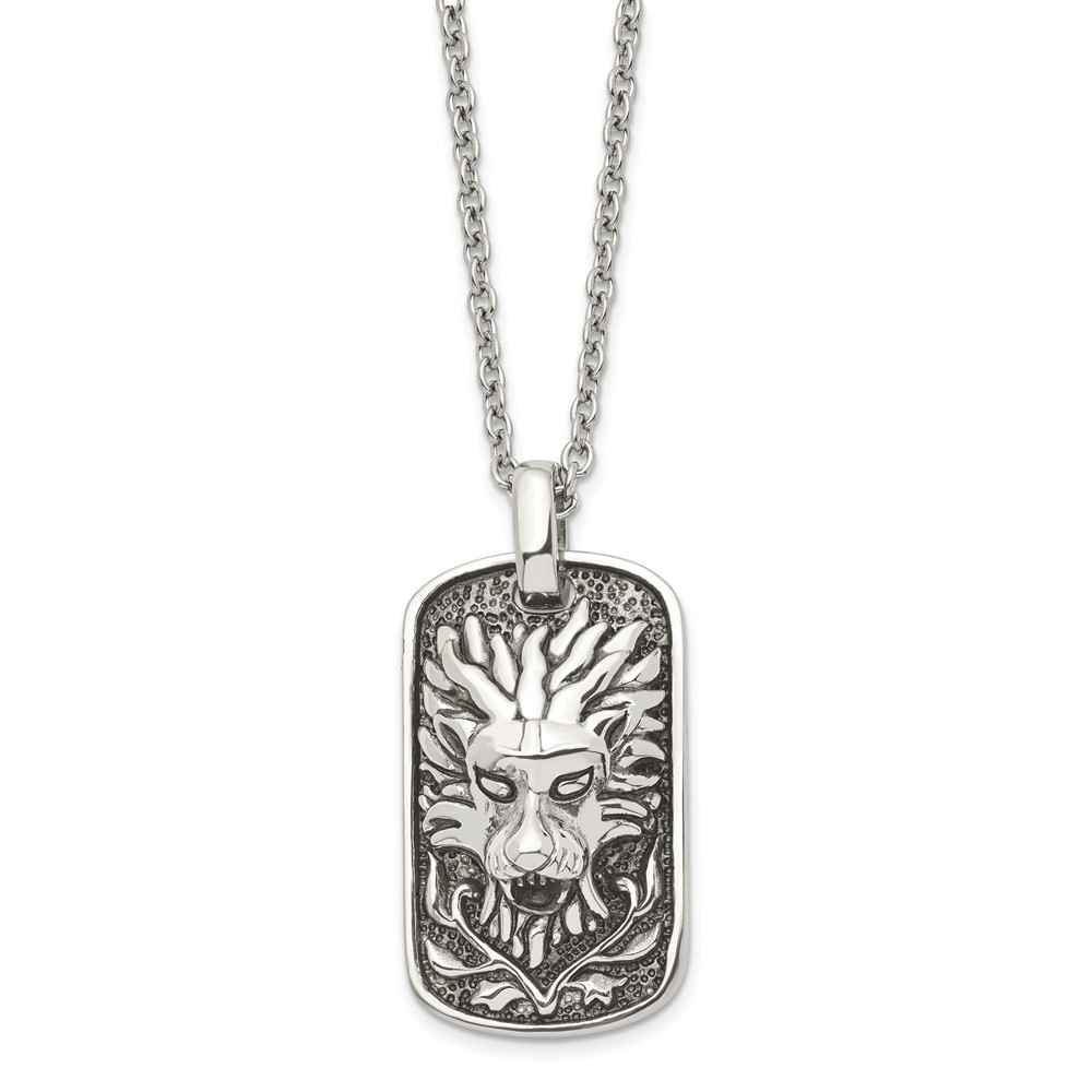 Chisel Stainless Steel Antiqued and Polished Mystical Lion Dog Tag on a 22 inch Cable Chain Necklace