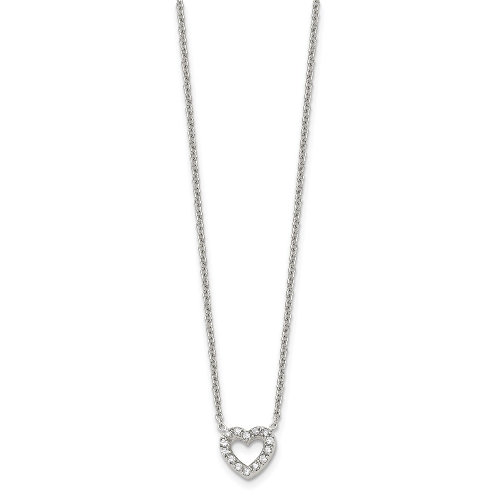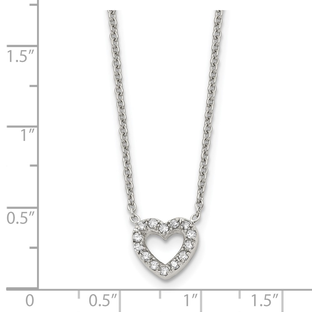 Chisel Stainless Steel Polished CZ Open Heart on an 18 inch Cable Chain Necklace