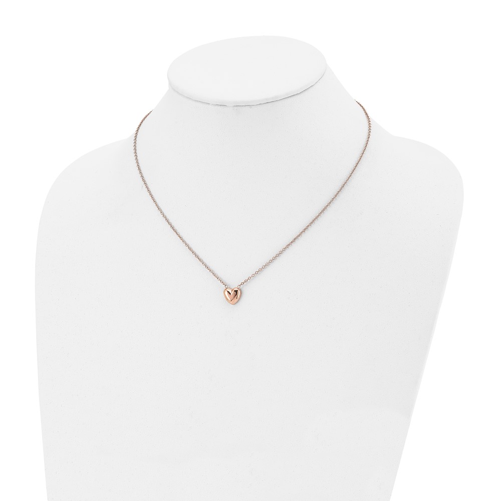 Chisel Stainless Steel Polished Rose IP-plated Heart on a 17.5 inch Cable Chain Necklace