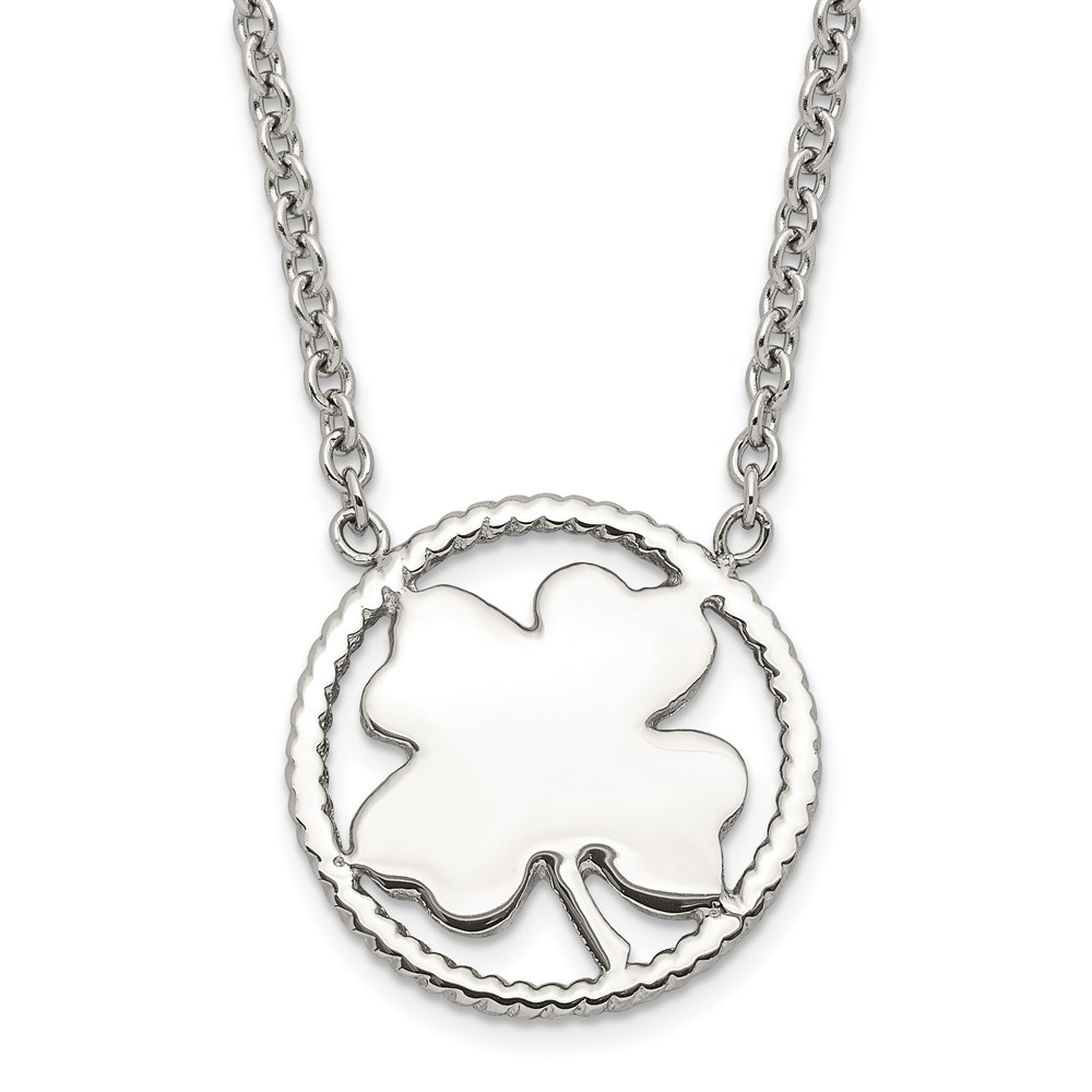 Stainless Steel Polished Four Leaf Clover Necklace