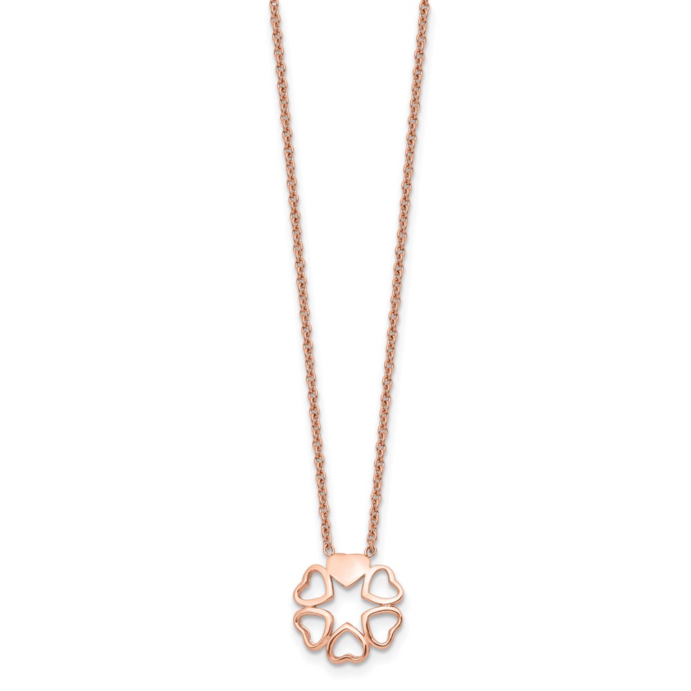 Stainless Steel Polished Rose IP-plated Circle of Hearts 17.25in Necklace