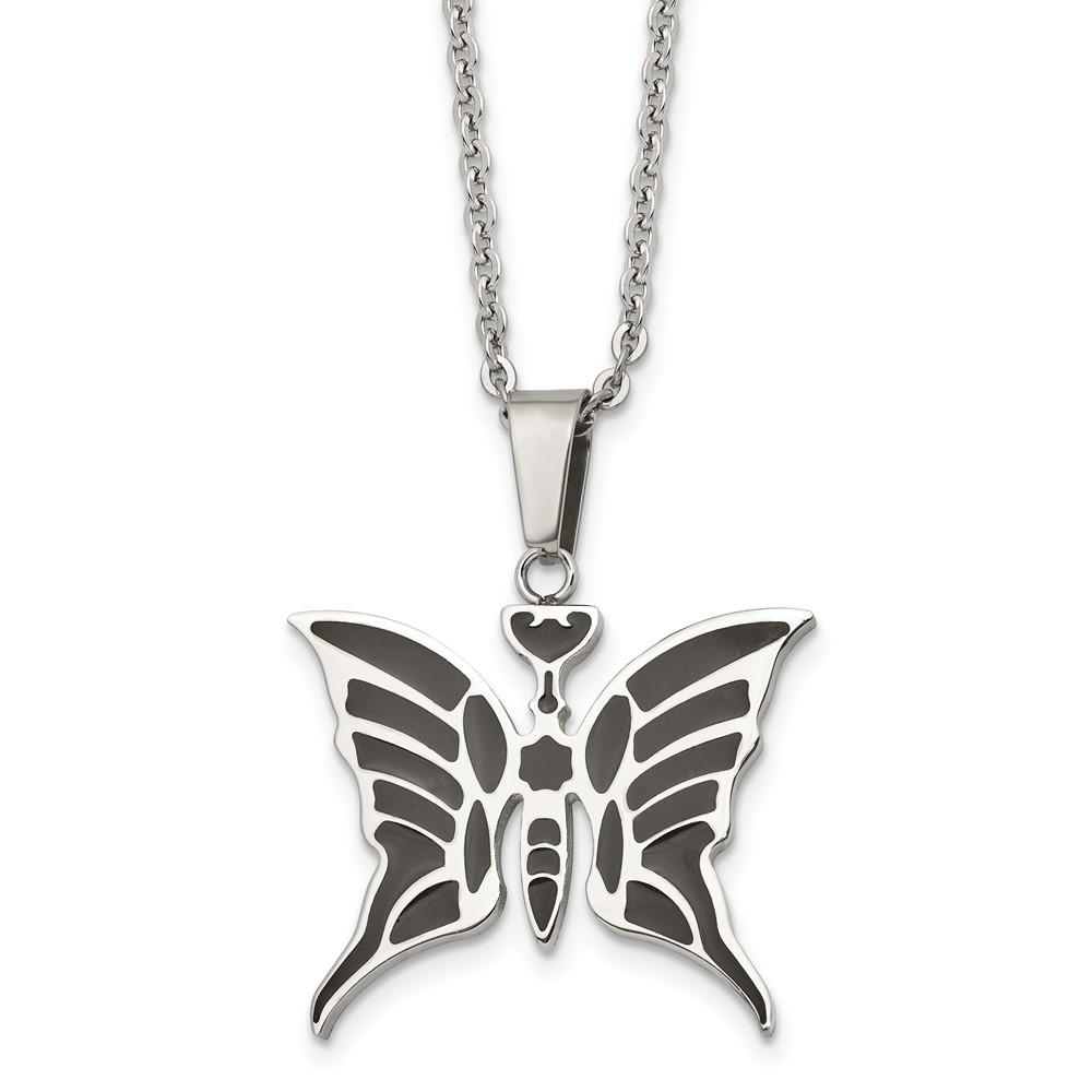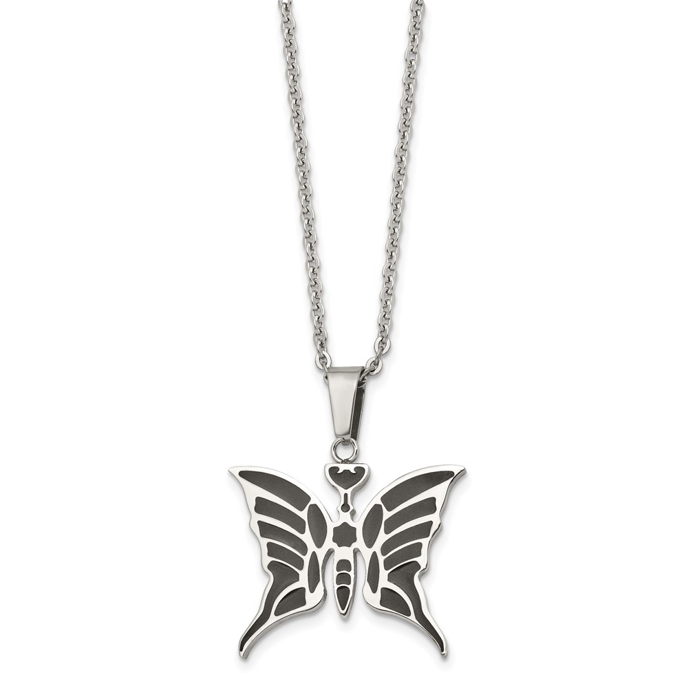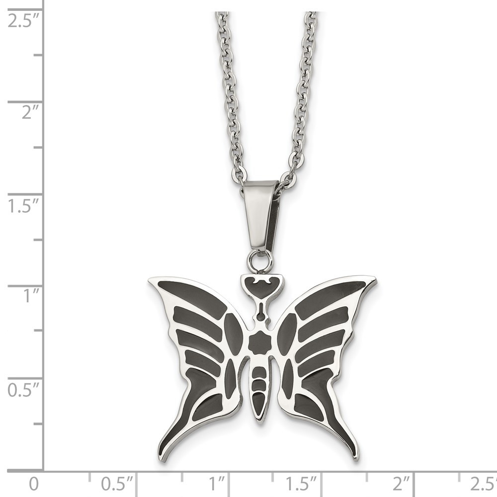 Stainless Steel Polished Enameled Butterfly 20in Necklace