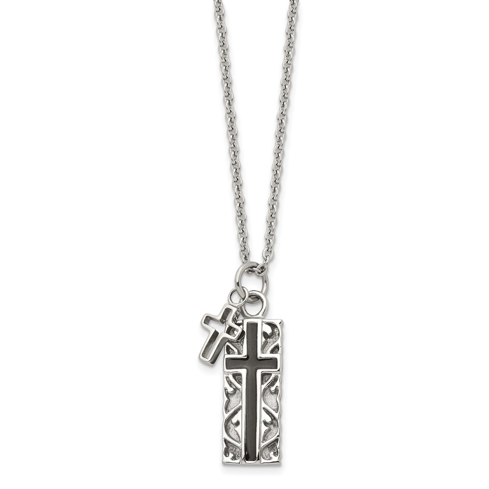 Chisel Stainless Steel Polished Black IP-plated 2 Piece Cross Pendant on a 20 inch Cable Chain Necklace