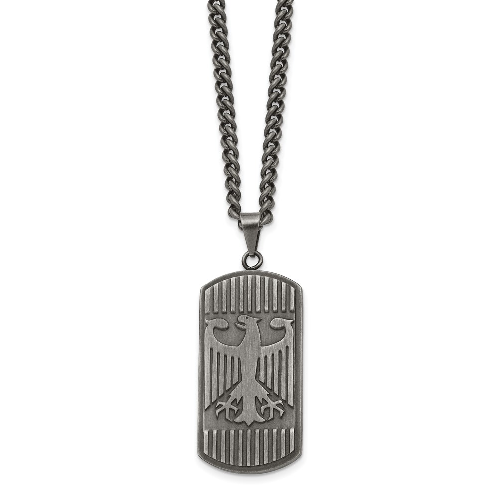 Chisel Stainless Steel Antiqued and Brushed Phoenix Dog Tag on a 22 inch Curb Chain Necklace