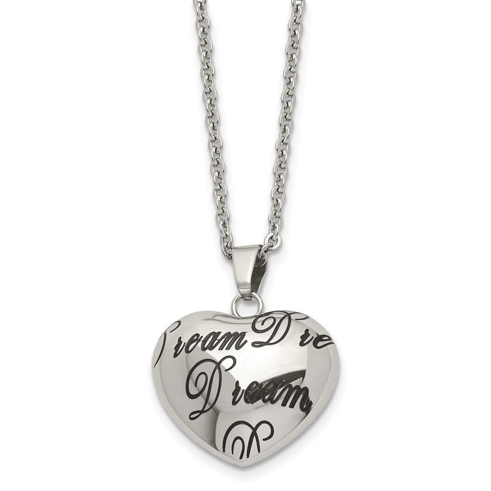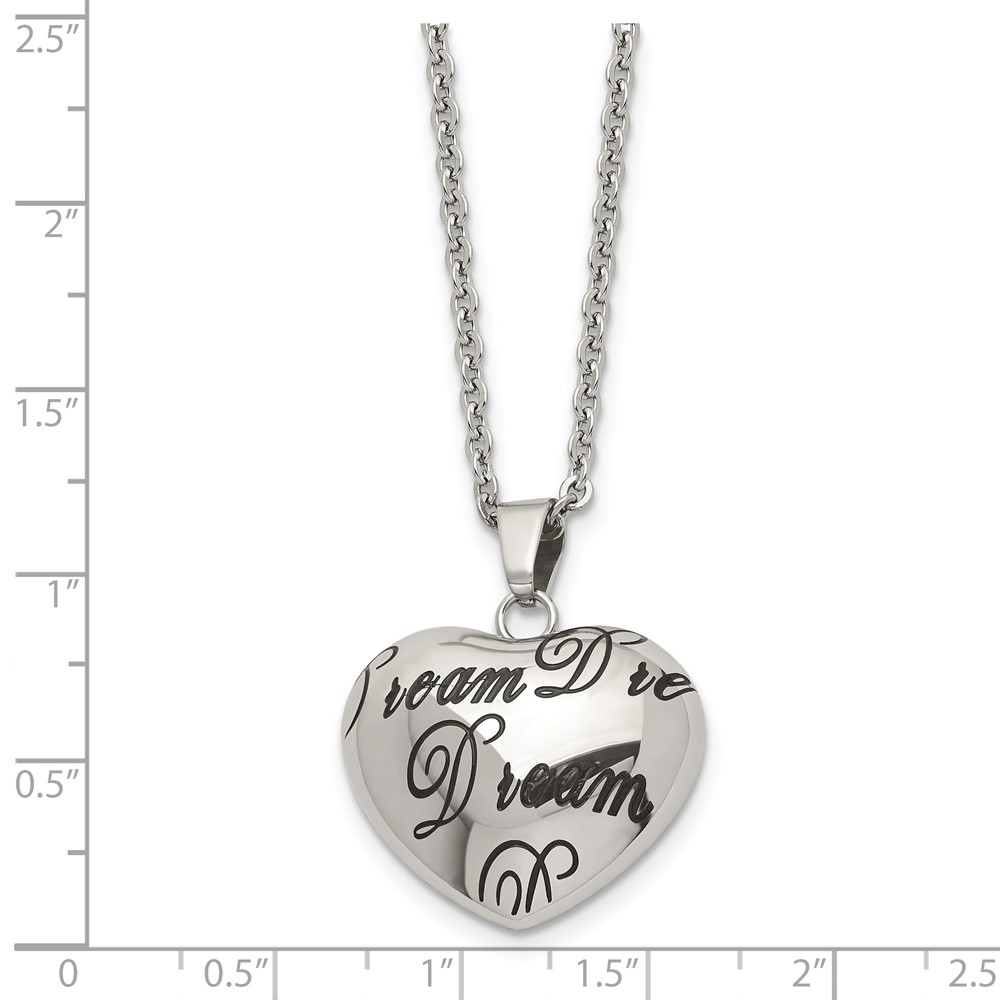 Stainless Steel Polished Enameled DREAM Hollow Heart 18in Necklace