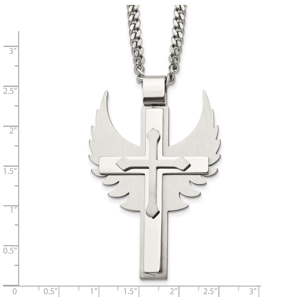 Chisel Stainless Steel Brushed and Polished Cross with Wings Pendnat on a 20 inch Curb Chain Necklace