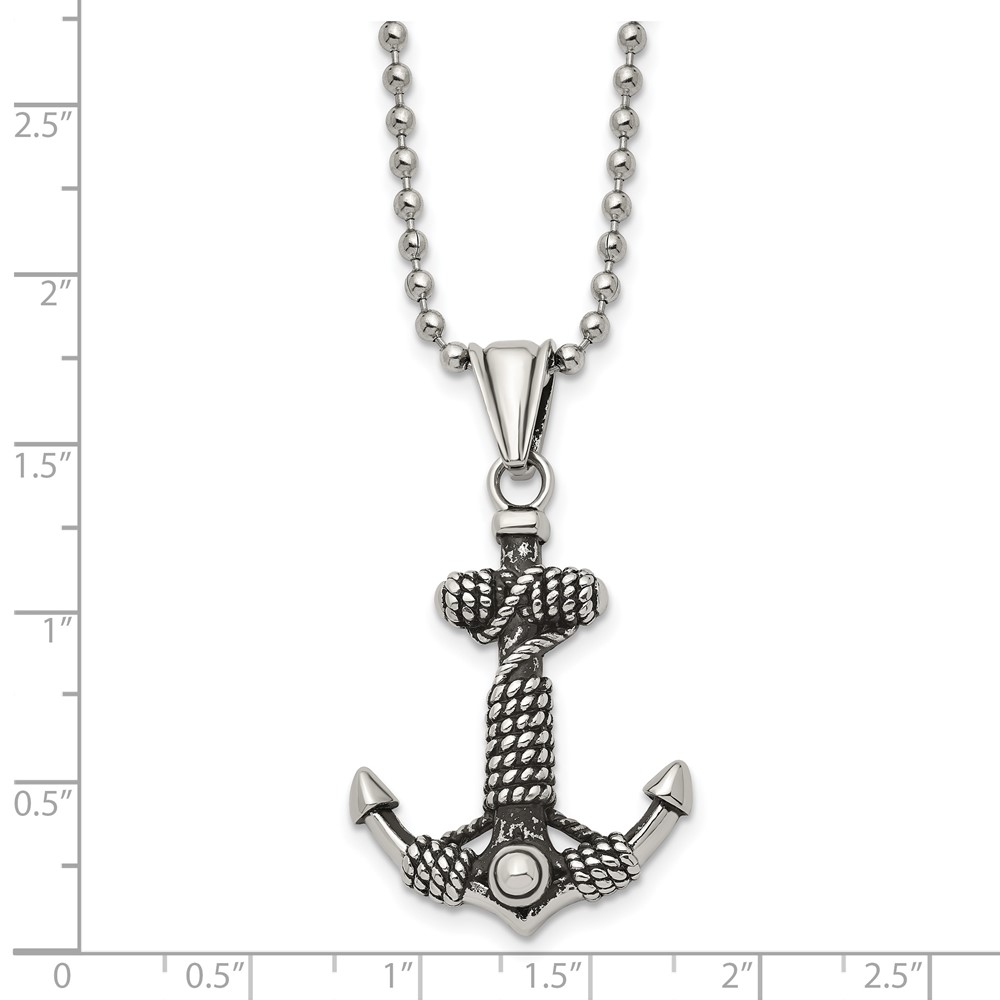 Chisel Stainless Steel Antiqued and Polished Anchor with Rope Pendant on a 24 inch Ball Chain Necklace