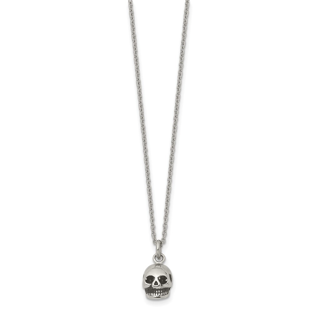 Stainless Steel Polished and Antiqued Skull 19in Necklace
