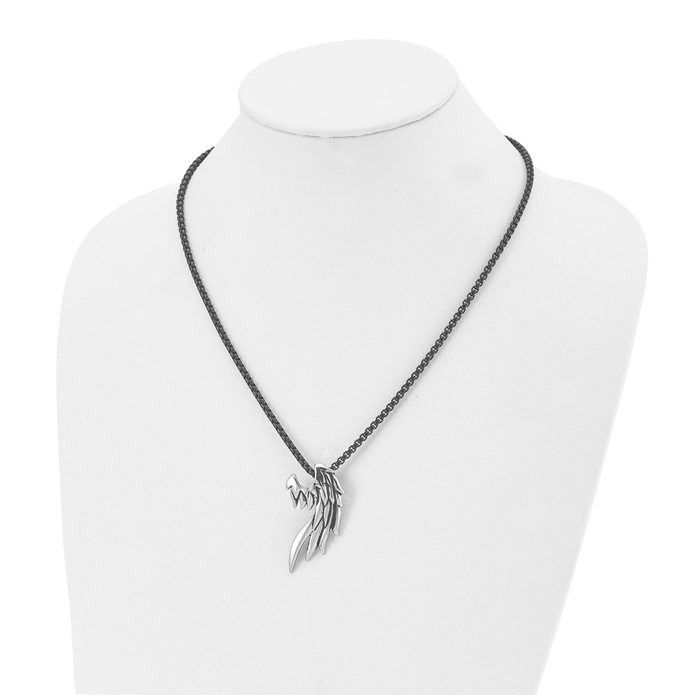 Chisel Stainless Steel Antiqued and Polished Wing Slide on a Black IP-plated 20 inch Box Chain Necklace