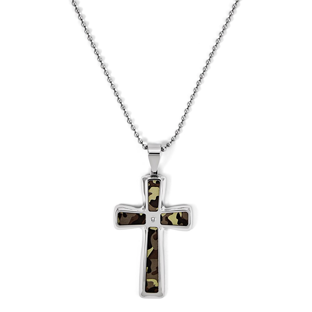 Steel and Diamond Camo Cross on 24in 2.4mm Bead Chain